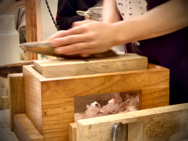 お店のカウンターでは、お客さんからの注文のたびに、永松さんがかつお節をその場で削って提供してくれます。