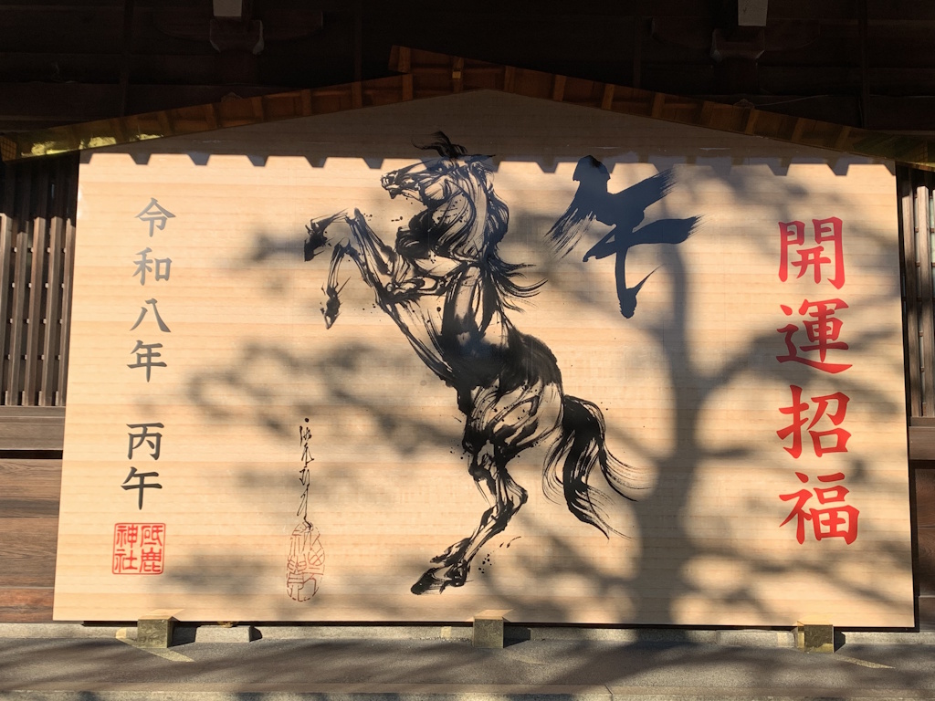 まだ初詣の余韻が残る境内には、開運を願う大きな干支絵馬が飾られていました。縁起物の写真にあやかり、弊所も今年のご利益をいただきたいと思います。